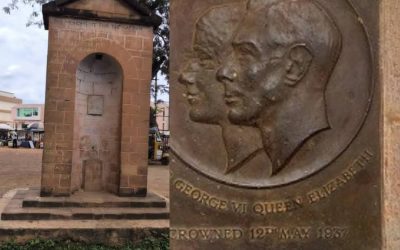 Metal-like bronze portrait of King George VI and Queen Elizabeth on a coronation of monument in Tamale stolen